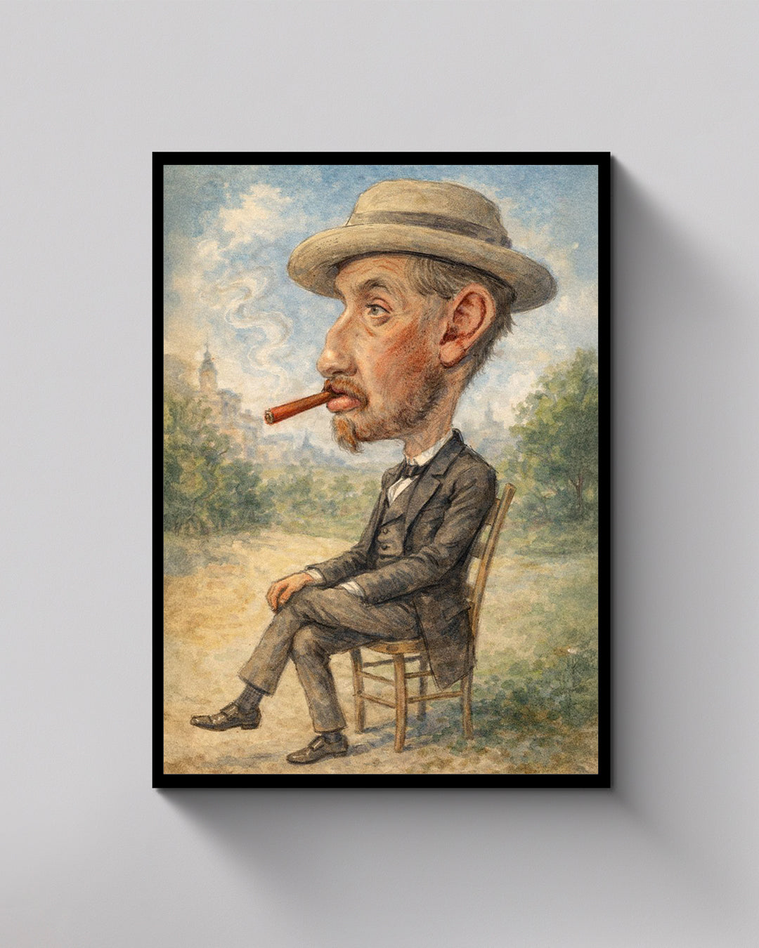 Karikatur eines Mannes mit einer großen Zigarre